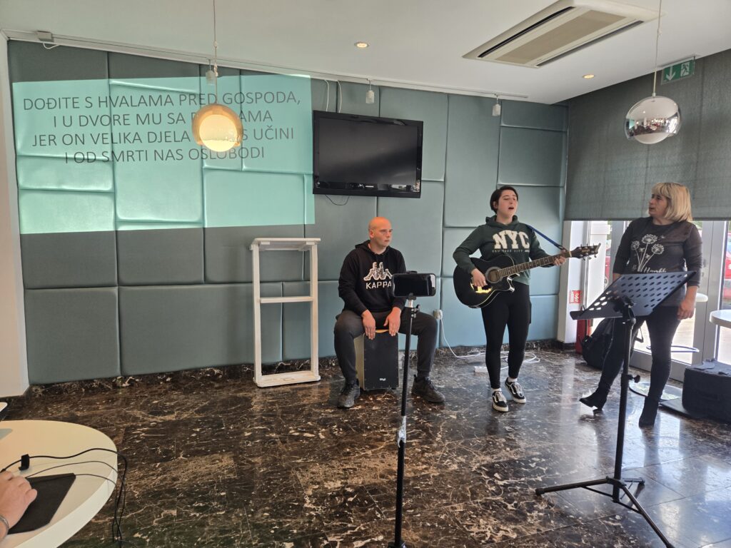 A great start before heading to Hotel Korkyra bar for Sunday service. The Evangelical Pentacostal Church of Korčula has over a dozen members, and have some trouble finding worship space. The hotel is under construction and lets the church rent the space until May. Please pray for God’s help finding the next place.
