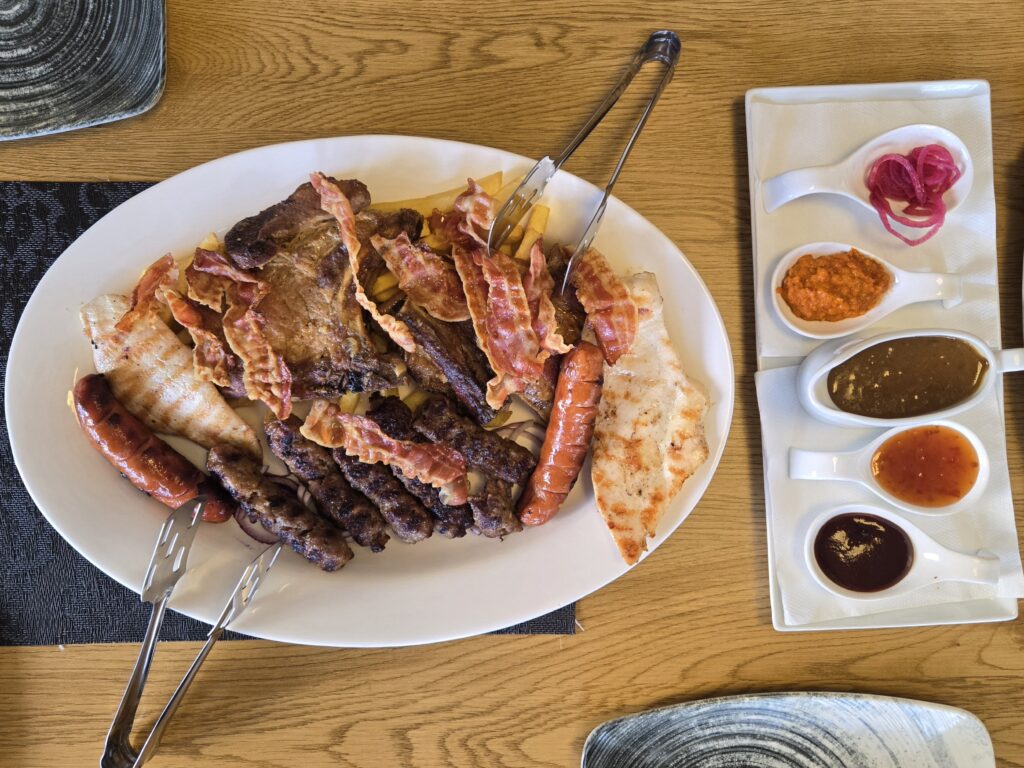 Because there was a large traveling dance troupe staying at Hotel Dalmicija, it was overbooked, and our reservation canceled. However, we were the blessed recipients from the abundance of food. Free pizza, breakfast buffet, and meat plate.