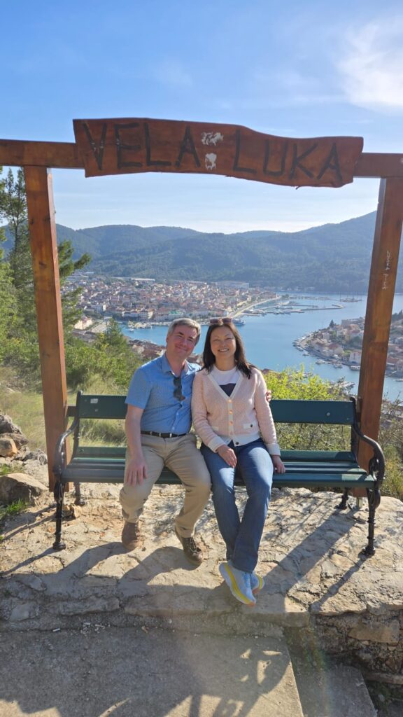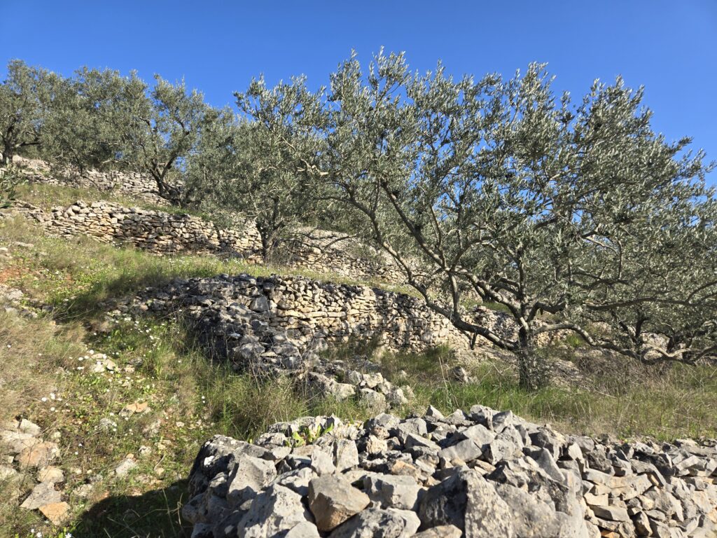 Then Neven left to coach the local boys soccer team, and his wife Christina showed us around town and took us to Vela Spila cave where archeologists discovered stone age settlement. That same hill has terraces of olive and other trees, overlooking the town.
