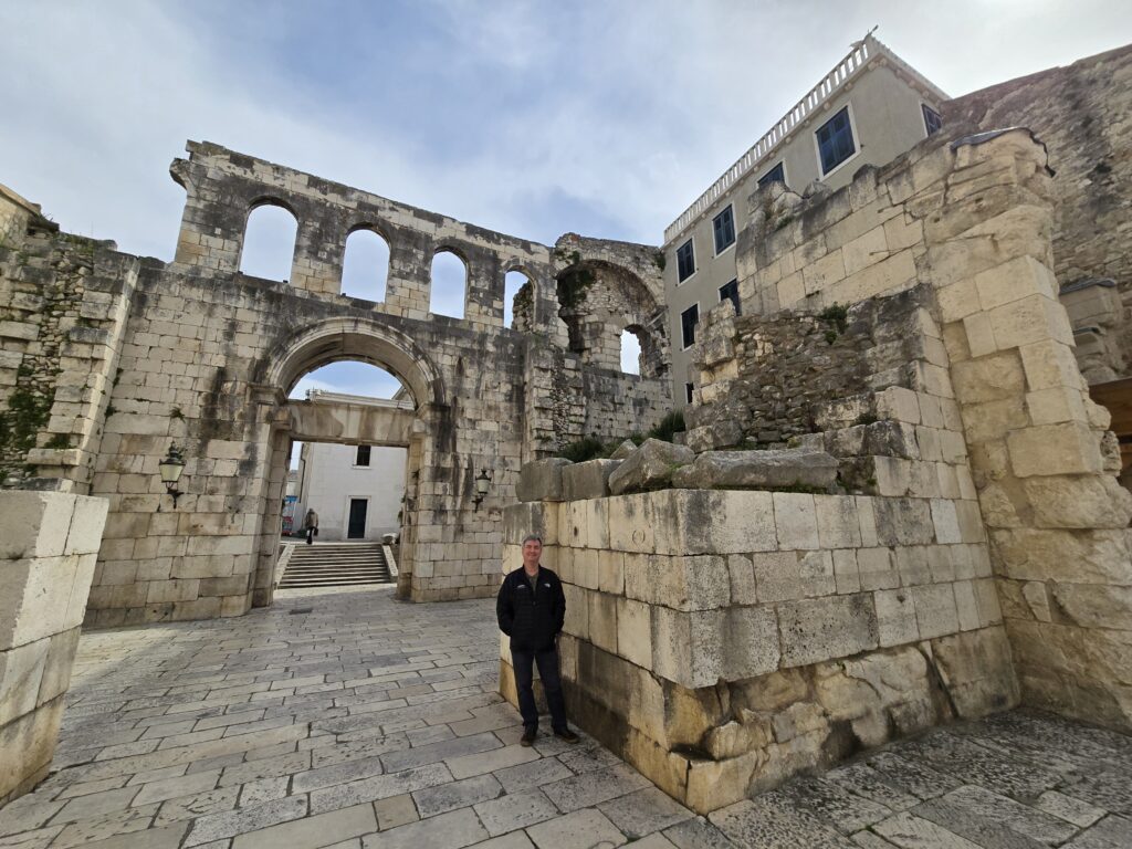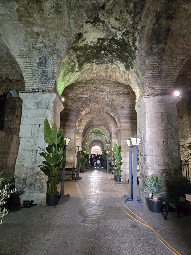 Another praying, cultural and northward travel day. This time from Split to Rijeka. We crossed through an outdoor market featuring local fruits, vegetables and flowers. That lead into Split’s old town, starting with Roman emperor Diocletian Palace. The area above ground changed over the centuries, but the subterranean floor was buried by time until rediscovered in the 1700s.
