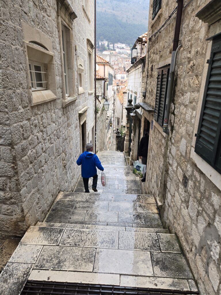 The plan for Dubrovnik was meeting a few members from the Baptist Church. But John Lehn got miserably sick from the conference, and no one else was available to interpret. Please pray for John and several others who suddenly became ill and missed the conference entirely. It was like something was preventing connection between churches. Like Pastor Ico attending to Andrea on the other side of the country. So we wandered around the old town instead, praying. There were so many stairs. Plus 430 more outside of the old city to get home. Non-resident cars are not allowed here.